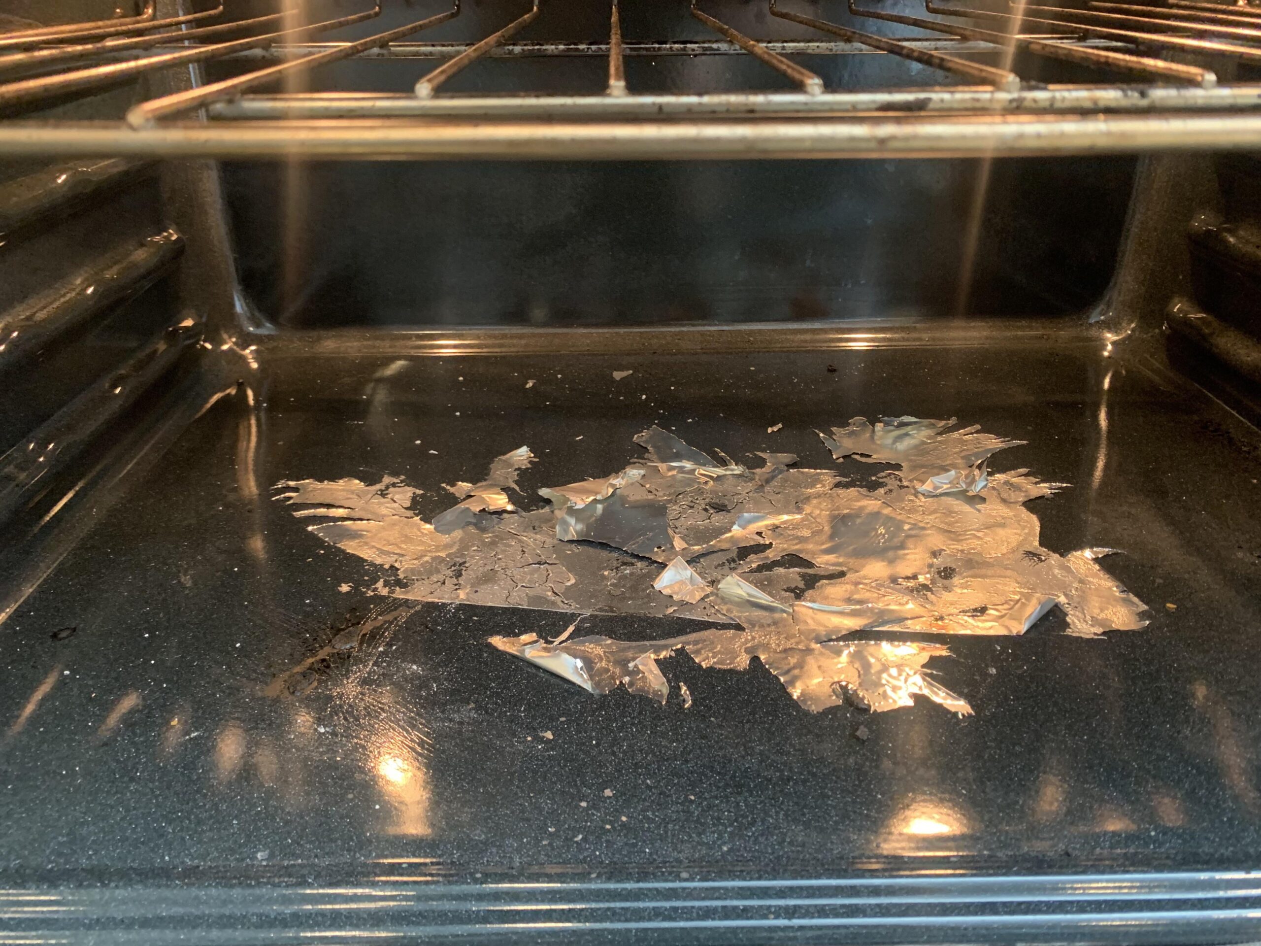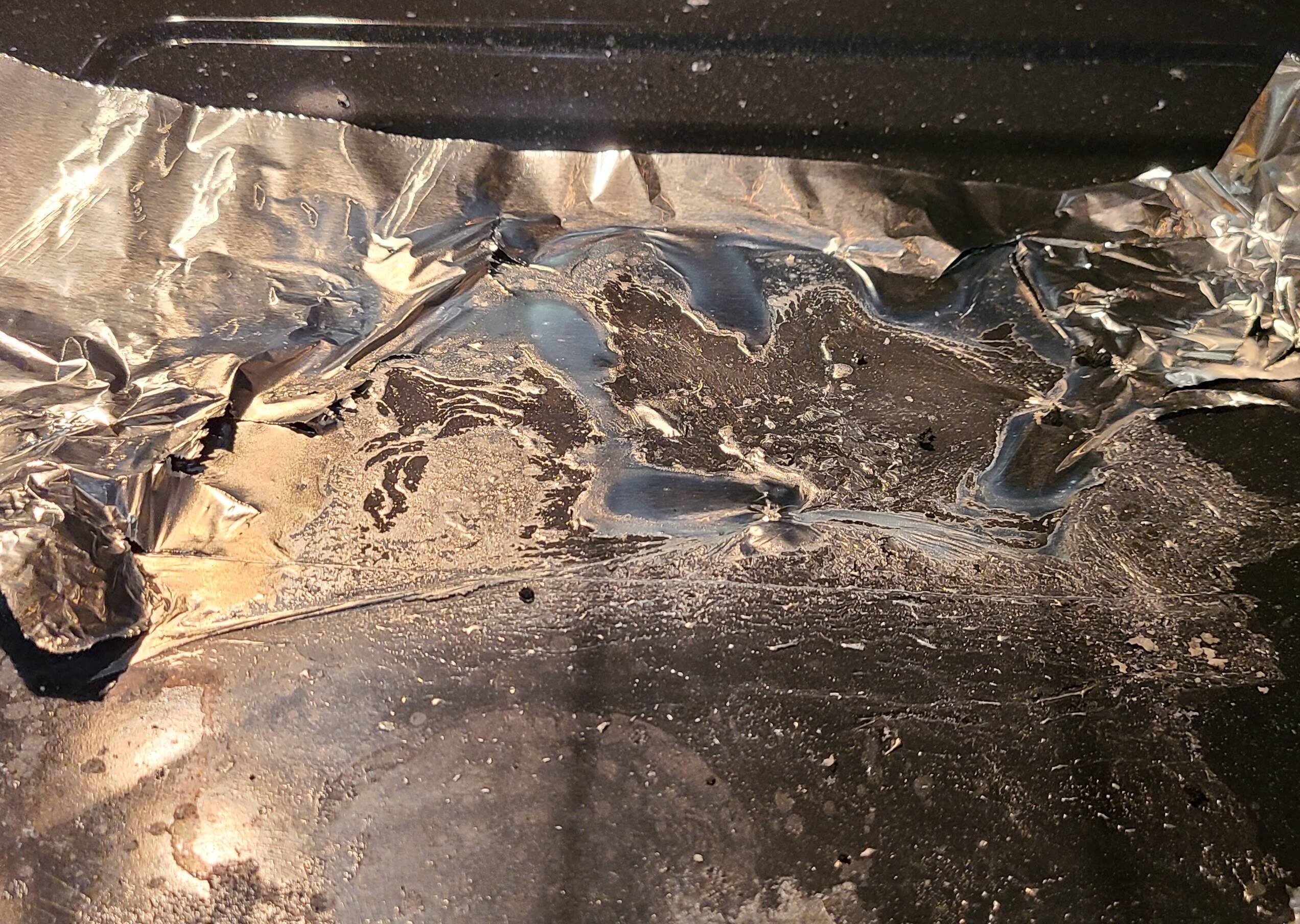 Think aluminum foil is indestructible? Think again. If the oven gets hot enough, foil can actually melt and bond to the oven floor. Once that happens, you’re stuck with a silvery, baked-on mess that’s nearly impossible to remove. Some people try scraping it off, only to scratch their oven in the process. Not fun.