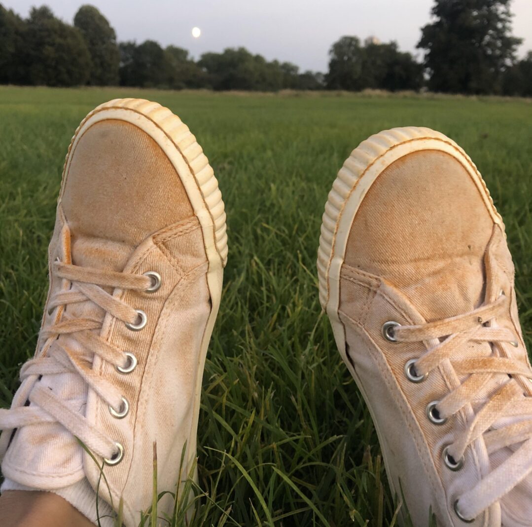 So the other day, I got back from walking the dog—Tyler, who’s lovely but very naughty—and I kick off my shoes, as one does. And immediately I notice it. This orangey, rusty smear all over the soles. Like I’d stepped in a weird chalk or, I don’t know, low-budget paint. What would you think in my place?
